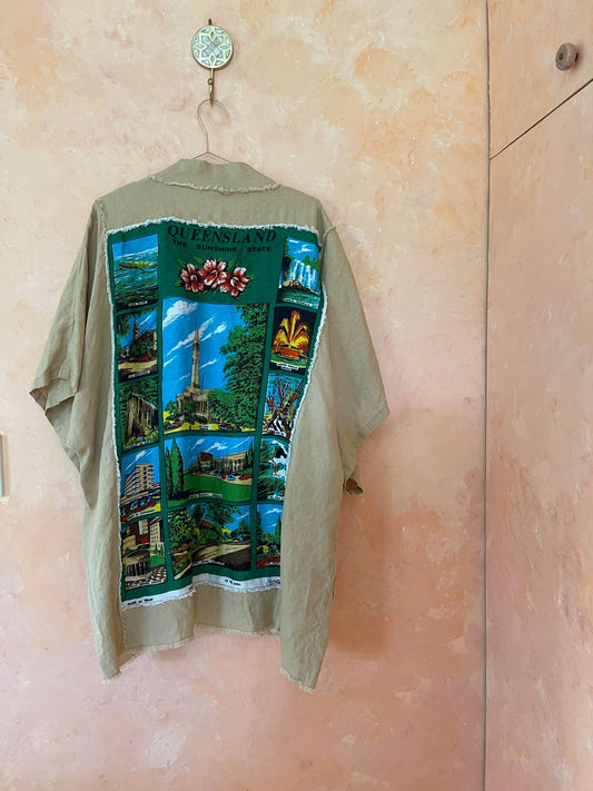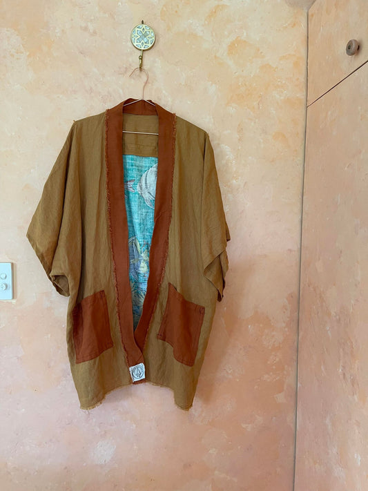 Each genuine vintage tea towel dress or robe is hand made with incredible attention to detail. The genuine vintage Australian tea towels are sourced from all over Australia and chosen for their beautiful artworks which are then matched with 100% pure linen to create a unique one-of-a-kind dress or robe. The fraying of the hem is then done by hand to add to the raw and natural aesthetic of the garment. If you are looking for a hard wearing, comfortable dress that is also a sustainable, wearable artwork check out our range below...